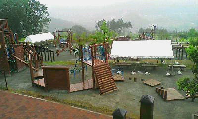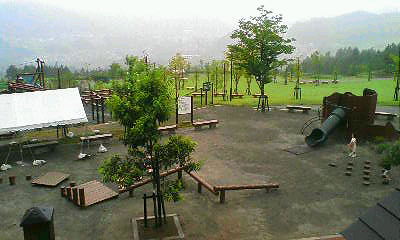 ここは大月、桂川ウェルネスパーク 暑さは全くなし! お日様もなし! 床も無し!? 小雨がぱらつく中、芝生でやるらしい・・・・・・ どうなる!? 俺!!? |